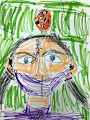 Love your artwork. Is that a ladybug on your head? I think the way you drew the eyes make them look like they are looking right at me! Well done!