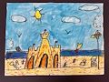Hi Sweetie, I love your castle! The blue sky is amazing and the water makes me want to do a cannonball! Maybe we can build a replica of your castle in the sand when you come visit!