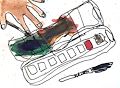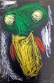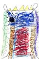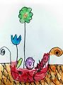 You did a great job showing the texture on the fish! This really illustrates the "Horror" for the small green fish.It looks like drops of blood are dripping on him. He is is trouble! Nice work! Nana