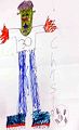 This creature has such long legs. I imagine he can outrun everyone! It looks like he has cleats on his shoes. Guess he is a good soccer player? Is this how you feel if you lose a game, green faced? Nice job! Love, Nana