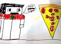 I enjoyed this picture! It appears the large piece of pepperoni pizza is in trouble! The other character is hungry and looking at it with a determined look in his eyes! It makes me hungry for pizza. Nice work! Love, Nana