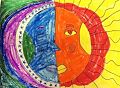 I love this artwork! The colors and details are great. I feel the drowsiness and coolness of the moon and the radiance and warmth of the sun when I look at it! Keep up the good work! XO Nana