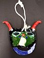 This looks like a mask that warriors wore during ceremonies. Very colorful. Is it made from paper or clay? I like it!