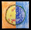 Jameson, I love this piece of artwork! Your use of warm and cool colors is spot on! What a great idea to have the red heat rays radiating off the sun, and the green border encircling the moon. Keep up the great work!