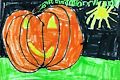 This piece of art work is great, for so many reasons Jameson! I love the dark background-it reminds me of a chilly October night. The furled grass adds texture. All the colors pop-the orange against the black, and the green against the orange and black. Great job!