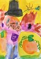 What a fabulous scarecrow! So colorful! Great work Davis!