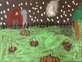 I just love your latest art. The midnight pumpkins look so happy in the field by the awesome red barn. Love the twinkling stars and moon. Well done Olivia!