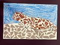 I love this! Great job!! It looks like the sun is sinking into the ocean. I love the different colors for the water. Love, Mom
