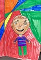 Love the colors you chose for the background and clothes. The diamond shapes are blended in a clever way. Happy boy and happy painting.