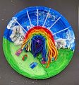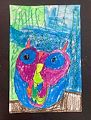 I love the blues, greens purple, red and yellow colors that you chose for this one! Good work kiddo.