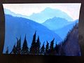 I love your mountain artwork! It is very dramatic and the trees are awesome. I also noticed how the varied colors make the mountains stand out. I’m always impressed with your artwork and have the green guy with the splatter growths on my refrigerator.
