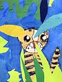 Hi Jared! Grandpa and I LOVE your beautiful picture sharing the wonders of spring! We love how you included so many insects (and spider) and the bee buzzing the tall tulips towering over the bugs. Good perspective! You even included the stamens on the flowers! Your sky is really pretty too. Your picture made us feel happy!