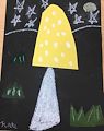 Dear Kate, I love your Mushroom with the yellow top and white stem. I see the stars and the moon with the grass at the bottom. You thought of everything. I love you, Grandma Bonnie