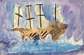 Dear Kate, Your ship looks like it is happily moving along in the ocean. I like the colors you used for the water and the sky. I love you. Grandma Bonnie