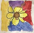 Dear Kate, I liked this picture so much that I ordered a print of it. I like the yellow, purple, red, and blue background. Of course the flower is special because it is yellow, which is your favorite color. It reminds me of a sunflower. I love you, Grandma Bonnie