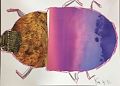 Dear Kate, This is definitely a girl beetle with all of the pink and purple. She is so colorful. I hope it was fun to make. I also saw, for the first time, the yellow flower you drew with the yellow, purple, red and blue background. Of course your pretty flower is yellow, your favorite color. It reminds me of a sunflower. I am so happy to be able to see your artwork. I love you, Grandma Bonnie