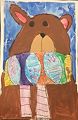 Dear Kate, I really like your bear. I love the scarf you drew to keep her warm. The scarf is so colorful with all of the different designs. I like the colors you chose. It is great to see your artwork. I love you.
