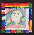 Sean, What a neat picture! I like the colors and wonder about the background. It looks like an unusual kind of paper. Is that person with green hair? Good job. Mary Gram