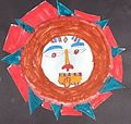 Your Aztec Sun Drawing almost looks like a lion. I like how you got creative and it is so funny how he is sticking his tongue out...LOL. You are a great artist Calum! Love, mom