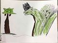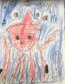 This drawing is very unique. It seems to have a story theme from Ted & Fred, where he lands his plane on a tree on an island. But yet a twist with a sea creature who appears to me nice and delivering hearts. That’s what I see not knowing what the assignment was. Nice job!!!