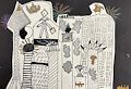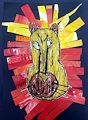 Aldrick, This is a very modern piece of art. You will have to tell me the story behind the art. I do like the print colors and I like the blue man. It seems he is reaching for the sky. Great job.