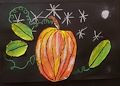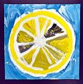 Aldrick, What a funny thing to paint. A lemon!. You did a great job showing all the sections of the lemon, the white outer ring and the yellow rind. You are a great artist. Sissy