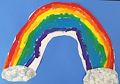 I really like your rainbow. The colors you painted are so bright. I also like your fluffy white clouds.