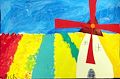 This is a beautiful piece of artwork. You did a great job on the windmill. I love the red blades on the windmill,