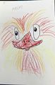 I absolutely love this. The colors are perfect and I love how you drew the eyes!!! Now you need to name it!!