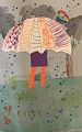 What a cheerful umbrella on a rainy day! Good job creating the feel of a dreary, rainy day. The light, colorful umbrella stands out . And I like how you have a rainbow tucked in the background.