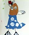 Hi Betty! This bird is so sassy and stylish...I like how her dress looks like the sky:)..and those three green dots in the back ground are magic. Melissa