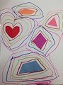 LOVE! I love how you created new shapes by combining and overlapping simple shapes. How the hearts become bows and their curves contrast with the sharp geometric shapes. Little hearts inside a big heart:)-like your heart inside mine:) Melissa