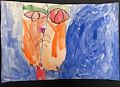 WOW - When did you get to be such a great artist. I love this picture. You did a great job making a perfectly oval face. Your person looks very happy. This picture makes me happy. Love, Mom-Mom