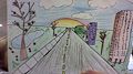 Sophia this drawing is amazing. I love the sunset, and beautiful sky. I think the trees are great too, love all the colors.