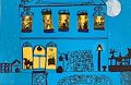 Well-placed yellow color-definitely represents lit rooms in what appears to be a busy house still after the sun has gone done! Like it lots!