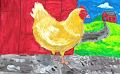 The "up-close" perspective of the chicken with the road and house in the distance is done nicely! Yay!