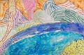 Raegan - Another colorful scene: looks like a neighborhood built along a hillside climb next to a lake on which a sailboat is cruising! What were you thinking as you created this image? Love from Nana