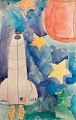 This rocket is really something! Looks just like it does in real life, I love the flames you have coming out the bottom and the USA and NASA writing. You sure are talented! Maybe this summer or when you come we can do some watercolors together. Love you!