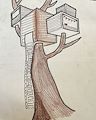 Amor, this is a spectacular piece of art of a treehouse. I love your detail and the little flags in the window, From inside the treehouse, it seems that you can go up to another part of the house and walk into another part for a great view in the wide window. This is so good, so neatly drawn and just so very pretty. What a realistic display of your unique treehouse! I love it!!