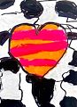 Say, This painting is very interesting. I like how you used black and white as the background colors. It makes the colorful heart POP! Good work. Love, Mema