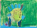 Grandpa Joe and Oma love your finger painted dog. The dog looks happy and ready to play.