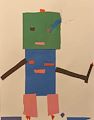 Emerson continues to impress me with his work. His use of rectangular and square shapes lends to the suggestion of the mechanical build and existence of a robot. the facial features (eye, mouth) affirms there is no human trait to this image which settles the robotic venue here. Well done, Emerson. I remain beyond proud of you.