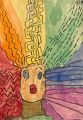 the colors radiating form the head and the wide-eyed look suggest to me that the subject is overtaken with amazement, as do I feel looking the the facial expression. I sense sudden alarm and the colors suggest to me that there is a lot of simulataneous emotion going on in the subject. Very good depiction, Emerson.