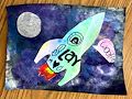 This rocket looks great Lauryn! That must be you inside and I'm sure it's moving fast. Did you take Ruby along and what other friends are inside? I enjoy your creativity. Love, Dad