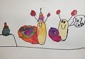 What handsome little snails looking at a birthday cake! Such beautiful colors. I wonder if one has a birthday soon.