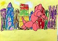 I think this looks like a pink wiener dog in the city! Love you Mason!