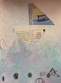 I like how the sail has a picture that looks like water and the words on the boat itself talk about being an archaeologist, someone who would be very likely to find a buried treasure!