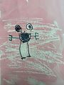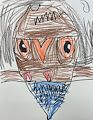 Are you trying to draw a alien with a black eye. reminds me of you when you got hit in the head when you sled into 2nd base