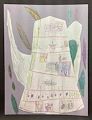 Scarlett, What an interesting artwork of a city. I love the people walking the dog?? Love, Meema.