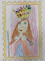 This princess and her crown are enchanting. I love how real her eyes look as she looks up at her crown. She looks proud of it too. I'm proud of you and your art. True talent.